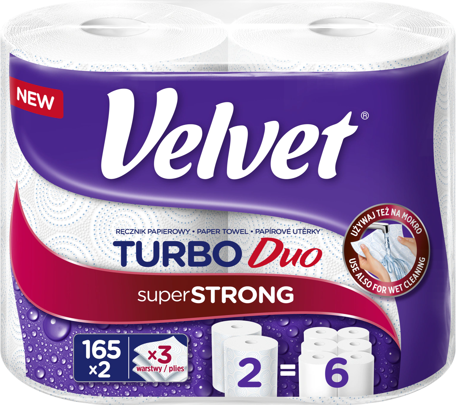 Ręcznik papierowy Turbo Duo to wyjątkowo wytrzymały i chłonny ręcznik papierowy klasy premium od Velvet Care, zaprojektowany z myślą o codziennym komforcie oraz higienie w domu. Dzięki solidnej, 3-warstwowej strukturze doskonale sprawdza się zarówno podczas sprzątania na mokro, jak i w codziennych pracach kuchennych.